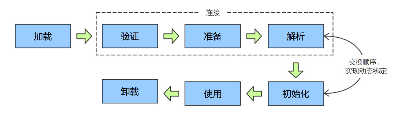 Java的动态类加载功能是由类加载器子系统处理的。它负责加载、链接,并且在运行时首次引用类的时候初始化类,而不是在编译期间。